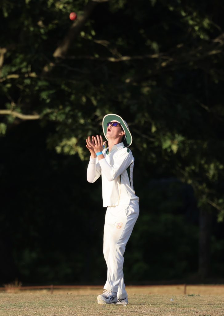 James Illingworth writes: “Another happy WQs cricketing day with victory by 23 runs, thanks mainly to solid partnerships (batting and bowling), terrifically tight fielding, excellent running between the wickets, and no end of jolly banter on the field – mainly aimed across the WQs team I hasten to add!!!! The batting highlights included an excellent father-son opening stand between Giles and Freddie Malec (their first opening partnership together); a strong, well-paced partnership on an unforgiving and slow pitch between Jack Campbell (47) & Ollie Illingworth (30) – yes, Ollie up the order (he apparently threatened not to drive his father home); and some strong hits from Sean McClure, Savin Banumugama and Seb Woodford (including a very classy reverse paddle sweep off his first ball (what do they teach at Marlborough?).