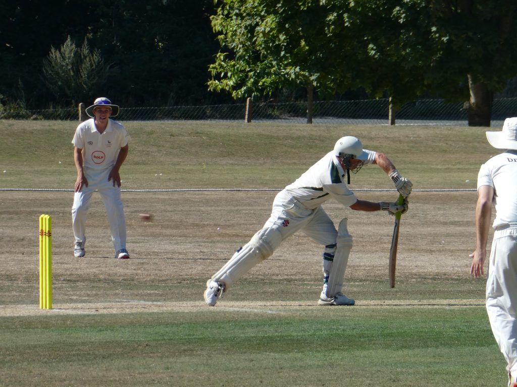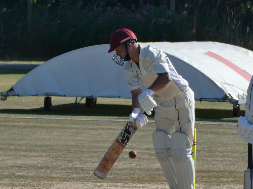 The reply was contained to a steady start by some accurate seam bowling with Savin and Nick Jephson both bowled by one of the Frog’s premier league seamers for single digits. Skipper Tom Shaw joined Zac Collister and the score board moved nicely either side of the tea interval. On a wicket which was starting to turn, Collister (34) was bowled attempting to clear the fence and two short partnerships between Shaw and Tom Campbell (12) and Moses Onyuru (2 – run out by his captain) left Queries 141/5, needing a further 84 runs from 15 overs.